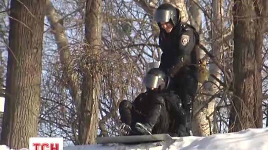 Молодые ребята, наверное еще вчерашние призывники на собственных щитах съезжают с горки, напомнили всем, что и они заложники ситуации.