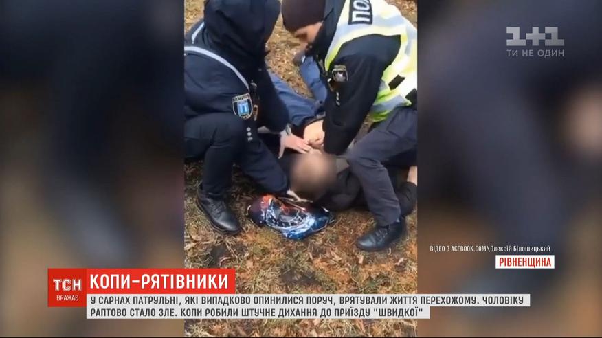 Несколько минут копы реанимировали человека, пока не приехала скорая. В городе Сарны патрульные спасли жизнь 35-летнему прохожему. Ему внезапно стало плохо, он начал задыхаться и просто упал на газон. Прохожие вызвали на помощь копов, которые как раз проезжали рядом.