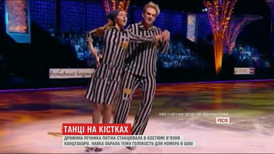 Татьяна Навка с партнером на развлекательном телешоу станцевали на льду в костюмах узников нацистских концлагерей - полосатых робах. Во время зажигательного танца российские звезды улыбались и позировали на камеру. Пользователи соцсетей по всему миру выступление назвали "потрясающим и кощунственным".