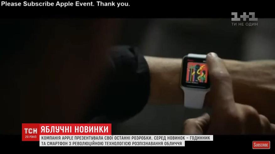 На рекламном видео можно увидеть платформу станции метро "Золотые ворота". Кроме часов, компания представила новые телефоны. Восьмой iPhone и сразу юбилейный десятый. От предыдущих моделей его отличает революционная технология, которая распознает лицо владельца.