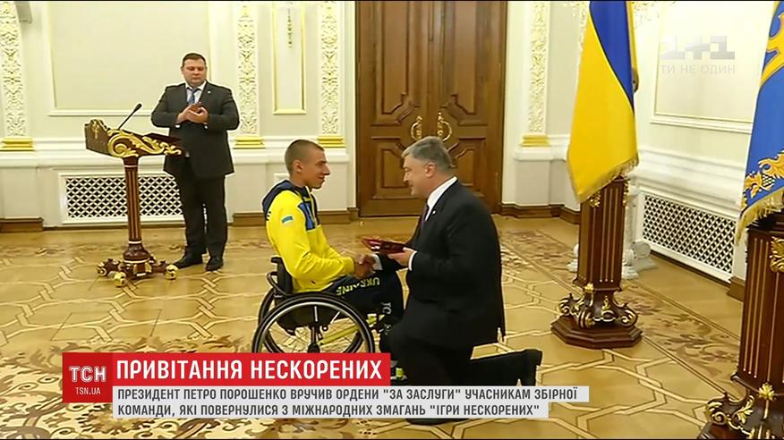 Участникам команды, тренерам и организаторам, которые поддерживали украинскую сборную, Петр Порошенко вручил высокие государственные награды. Романа Панченко, который на тележке стрелял из лука, Президент поздравил, стоя на колене. Кроме наград, Петр Порошенко поблагодарил непокоренным за патриотизм и призвал своим примером вдохновлять раненых в реабилитационных центрах.