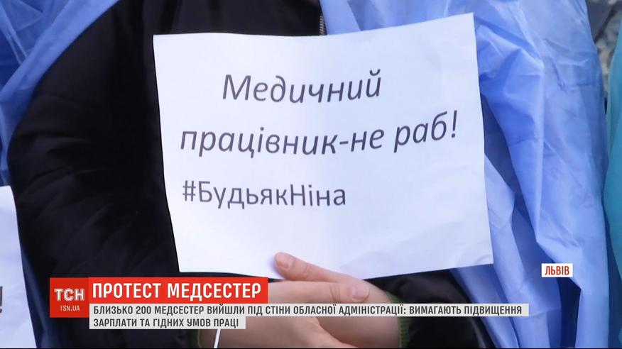 Протест в белых халатах: во Львове более 200 медсестер вышли на акцию "Будь как Нина"