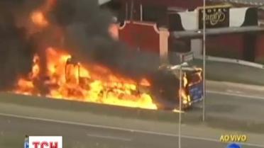 Возмущенные гибелью подростка от полицейской пули, десятки людей взялись крушить витрины магазинов и подожгли рейсовый автобус.