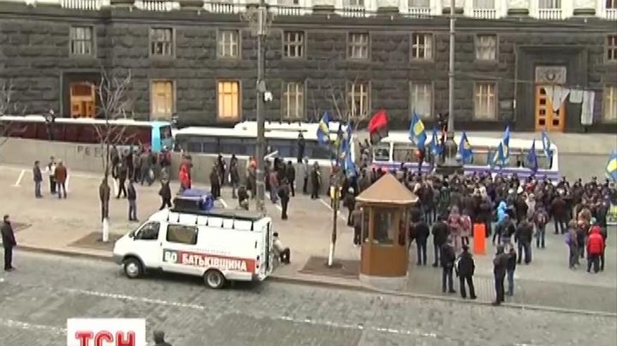 Примерно 5 тысяч человек с центральной площади столицы отправились на улицу Грушевского, к зданию правительства, оставив за собой баррикады.