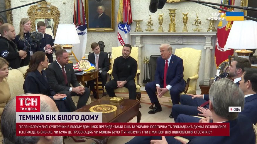 Этот разговор в Белом доме - потряс мир! Шок. Провал. Катастрофа. Пресса не жалела громких слов. Потому что прямо перед многочисленными телекамерами - происходило то, чего никто из простых зрителей - еще не видел: идейная схватка руководителей двух государств! Одного из самых мощных: называющего себя оплотом демократии в мире. И лидера другой страны! Которая, обливаясь кровью, бьется за эту демократию. Детали - в ТСН. Тиждень.