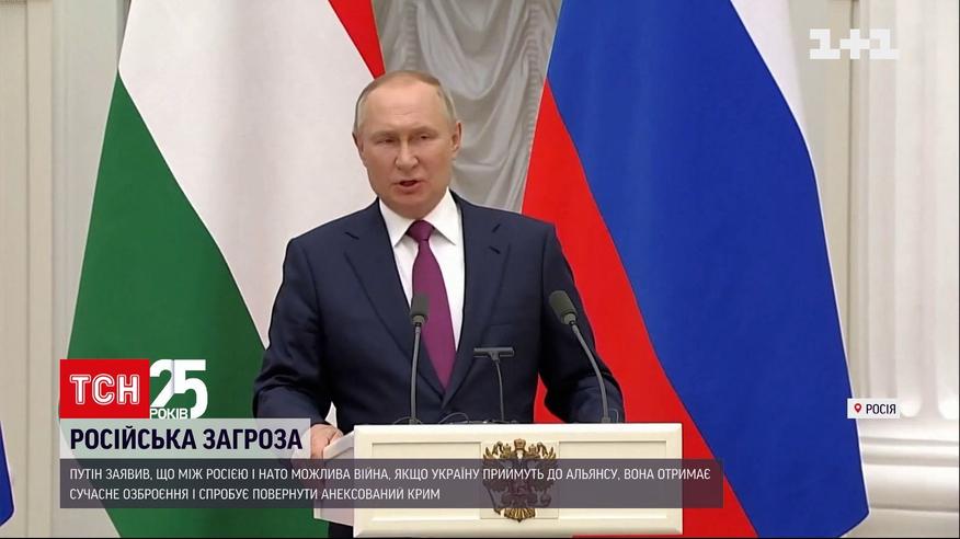 Путин прокомментировал, что может произойти, если Украину примут в НАТО. Глава Кремля заявил: если наше государство станет членом Альянса, получит современное вооружение и начнет операцию по возвращению Крыма, то за аннексированный полуостров, возможно, будет война между Россией и странами НАТО. Путин впервые за месяц прокомментировал ответ Соединенных Штатов и Альянса на требования Москвы по нерасширению НАТО.