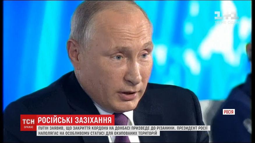 О том, что он против закрытия границы между Донбассом и Россией, кремлевский вождь заявил в Сочи. И пригрозил, что это приведет к резне. Путин настаивает на особом статусе оккупированных украинских территорий и принятии нашим парламентом закона об амнистии. А вопрос, собирается ли баллотироваться в президенты на выборах через полгода, оставил без ответа.