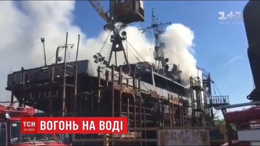 Пламя охватило водолазное судно "Нетешин". Оно занялось утром во время выполнения ремонтных работ. Ремонтировали корпус с использованием открытого огня. Пожар разгорелся мгновенно, на тушение приехали 5 спасательных экипажей и 8 единиц техники. Точные причины установит эксперты, которые сейчас на месте происшествия.