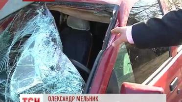 Пятикилограммовый камень бросили на трассу Киев-Чоп с пешеходного моста. Он попал в машину с милиционерами, которые как раз ехали на задержание. Сейчас водитель находится в тяжелом состоянии.