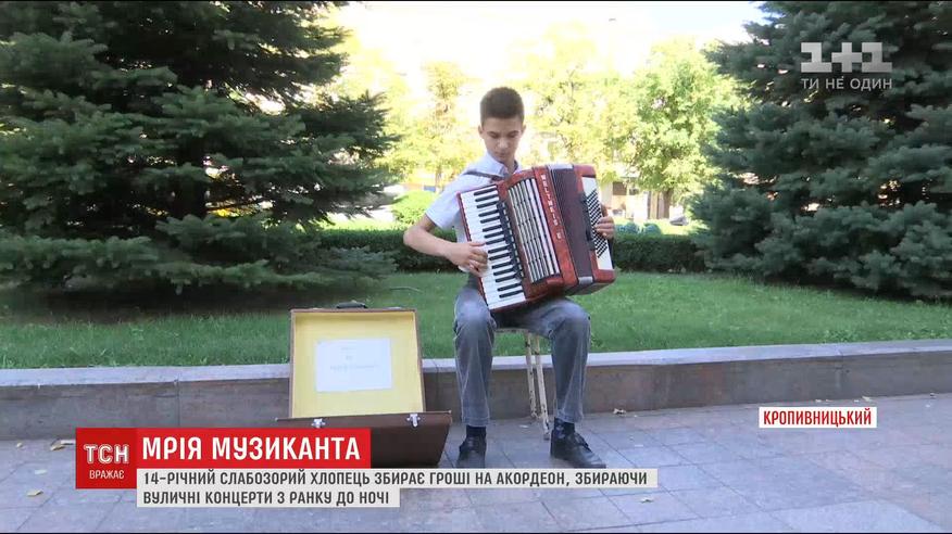 Ради своей мечты подросток с Кропивницкого развлекает прохожих музыкой на аккордеоне