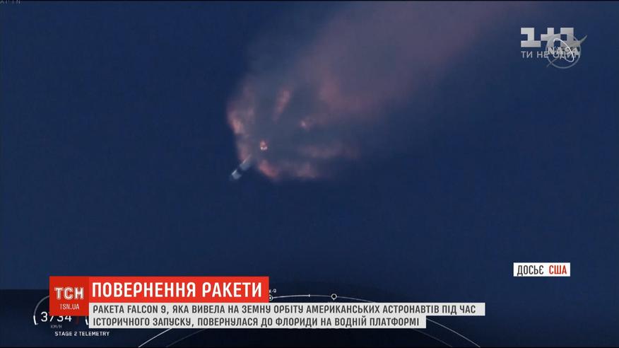 Ракета Falcon 9, которая вывела на земную орбиту американских астронавтов, успешно вернулась к побережью США с Атлантического океана. В штат Флорида, откуда она стартовала в минувшую субботу, ее доставила специальная платформа на водоеме.