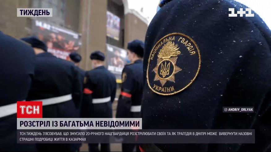 20-летний нацгвардиец открыл огонь по своим сослуживцам. В конечном итоге – 5 убитых и еще столько же раненых. В частности, среди жертв и гражданская работница завода. Подозреваемый во всем признался и сейчас в СИЗО. Журналисты ТСН услышали не менее страшные признания родных других бойцов. Почему так часто на срочной службе фиксируют самоубийства – смотрите в сюжете ТСН.Тиждень.