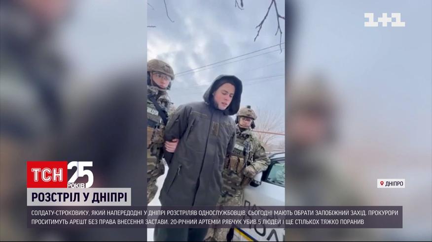 Солдату-срочнику, который накануне в Днепре расстрелял однослужащих, сегодня должны избрать меру пресечения. Прокуроры будут просить арест без права внесения залога. Двадцатилетнему Артемию Рябчуку, убившему пятерых людей и еще стольких тяжело ранил, грозит пожизненное заключение. Среди жертв стрельбы - четверо военных и одна гражданская - дежурная на проходной. Их семьям государство выплатит по миллиону и 800 тысячам гривен. Об этом на брифинге заявил уже бывший командующий Нацгвардией Николай Балан. Владимир Зеленский своим указом уволил его с этой должности.