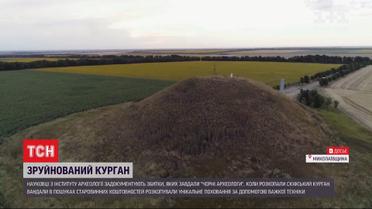Разрушенная достопримечательность. Скифский курган, который раскопали черные археологи в Николаевской области, сегодня посещает комиссия из столицы. Археологи задокументируют ущерб, который вандалы нанесли древнему захоронению. Ведь теперь вместо высокого холма там - котлован глубиной в 5-этажку. Это уникальное захоронение, которому 2,5 тысячи лет, говорят археологи. Такие могилы строили для царей и вельмож. Вместе со знатью хоронили драгоценности. Именно их и искали черные копатели. И действовали они с размахом. Работали тяжелой техникой среди бела дня. О вандализме ученым сообщили местные жители.