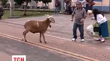 Очевидцы сняли атаку домашнего козла на видео и выложили его в сети. Животное с обрезанными рогами, вероятно, решила, что люди хотят забрать у него подругу. Поэтому атаковала жителей улицы и прохожих - жертвами агрессора стали несколько мужчин, пожилая женщина и даже пара мотоциклистов.