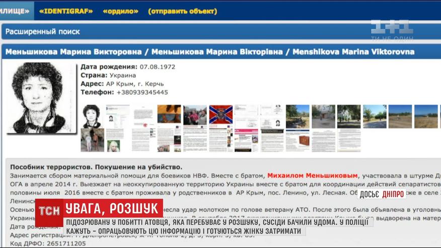 В прошлом году в оперном театре Днепра она разбила голову молотком демобилизованному бойцу Константину Кравченко за то, что он был в военной форме. А также вцепилась в волосы жене солдата и выкрикивала оскорбления в адрес АТОшников. В полиции начали уголовное производство за нанесение телесных повреждений, после того женщина исчезла в неизвестном направлении.