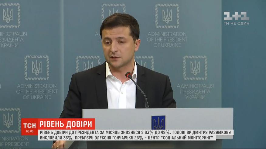 Рейтинг доверия к президенту Владимиру Зеленскому снизился до 49% - опрос
