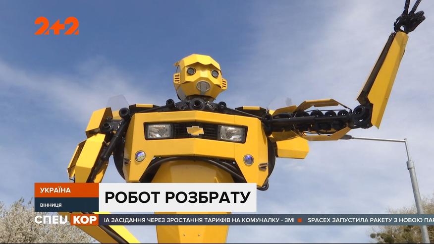 Робот на въезде в город: в Виннице на кольцевой развязке установили огромный трансформер