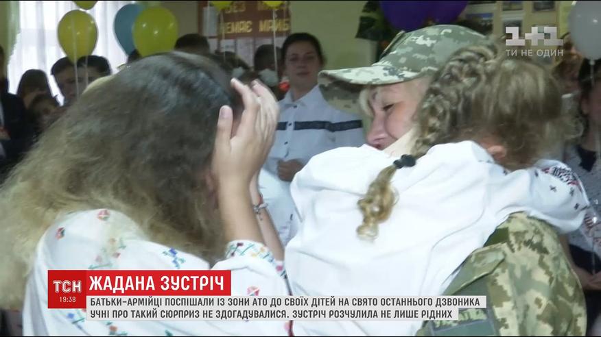 Они спешили на последние звонки даже больше, чем дети. Взрослых, воюющих на Востоке, журналисты ТСН подговорили устроить сюрпризы своим детям. Школьники, собирались на линейку самостоятельно, даже не подозревали, какое счастье их ждет. Встреча растрогала не только родных, а счастью детей не было предела.