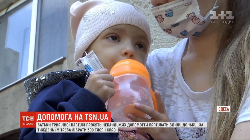 Лишь неделя, чтобы спасти крошечную девочку. В Одесской больнице угасает трехлетняя Настенька. Она преодолела рак крови. Но начались тяжелые проблемы с пищеварением. В Украине ее новую болезнь не могут даже диагностировать. А из-за карантина только единственная клиника в Барселоне согласилась взяться за ребенка, за 300 000 евро. У семьи их нет, а собрать деньги надо в ближайшие дни. Родители надеются только на чудо, то есть на хороших людей.