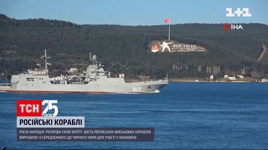 На фоне российско-белорусских учений государство-агрессорка перебросила в Черное море дополнительно шесть десантных кораблей, в частности ракетные фрегаты и подводные лодки. Это подтвердила мониторинговая группа BlackSeaNews. Таким образом российская десантная флотилия, находящаяся на ходу у берегов Украины, возрастет до 12-ти. Что рекордно. Ведь во время операции по оккупации Крыма Россия задействовала максимум четыре десантных корабля. Теперь В Черном море россияне якобы должны устроить учения. Именно этот повод – проведение учений – Москва использует для накопления войск на границах нашего государства и вероятной подготовки военного вторжения.