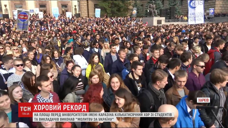 Харьков решил побить нынешнее достижение Трускавца и запланировал вывести на площадь перед Университетом имени Каразина хор в три тысячи исполнителей. Пели духовный гимн Украины студенты и преподаватели.