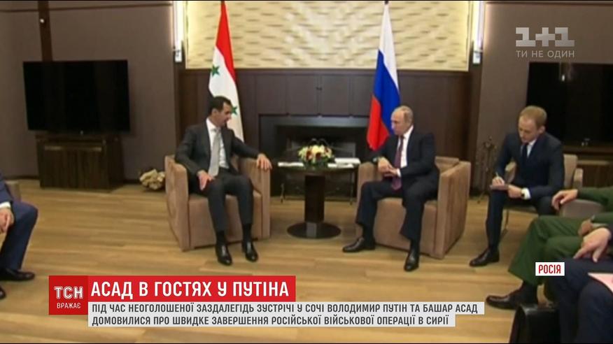 Об этом неожиданно заявил Владимир Путин после не менее неожиданных переговоров с сирийским коллегой Башаром Асадом. Они встретились в Сочи. На камеры поговорили о терроризме и официально заявили, что в Сирии исламистских радикалов почти удалось преодолеть.