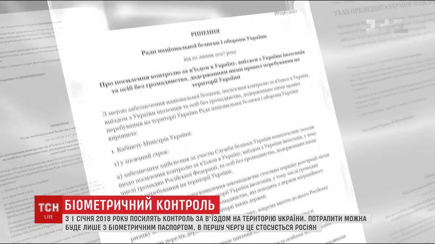 Президент ввел в действие решение СНБО. И касается оно, прежде всего, государств, представляющих для нас угрозу. В том числе России. Уже с 1 января граждане из страны-агрессора, которые намерены посетить Украину, должны заранее предупредить о своем визите, его цель и срок. При пересечении границы - обязательно сдать отпечатки пальцев или же предоставить биометрический паспорт.