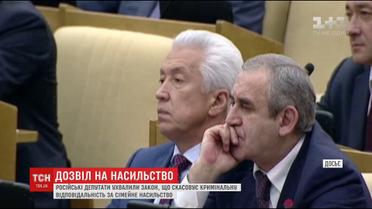 Они приняли закон, который убирает из Уголовного кодекса статью о побоях в семье. Отныне тем россиянам, что бьют родных, грозит лишь административная ответственность. В частности, штраф, общественные работы или арест максимум на 15 суток. Ранее за избиение родственников можно было сесть за решетку на срок до двух лет.