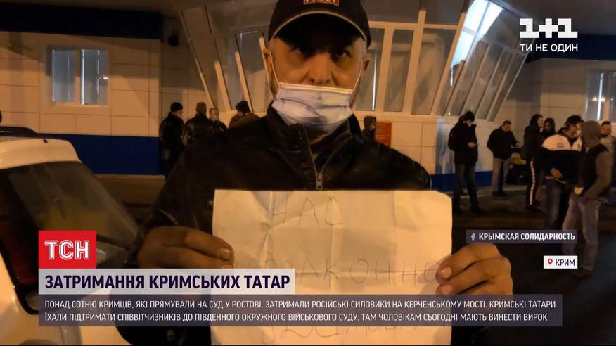 Забрали паспорта и не выпускают из оккупированного полуострова. Более сотни крымских татар, которые направлялись на суд в Ростове задержали российские силовики на Керченском мосту. Все крымчане ехали поддержать соотечественников в Южном окружном военном суде - там сегодня должны вынести приговор фигурантам так называемой Красногвардейской группы по делу "Хизб ут-Тахрир". Автобусы с кримcькимы татарами остановили российские ДПС, собрали паспорта пассажиров и водительские удостоверения. Некоторым людям за проезд угрожают штрафом. Как сообщает общественная организация Крымская солидарность - полицейские объяснили это необходимой проверкой лица по базе данных.