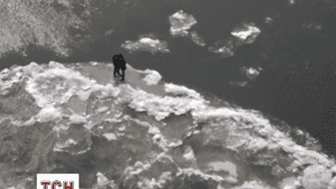 Российские спасатели спасли двух детей, которые застряли посреди реки на льдине