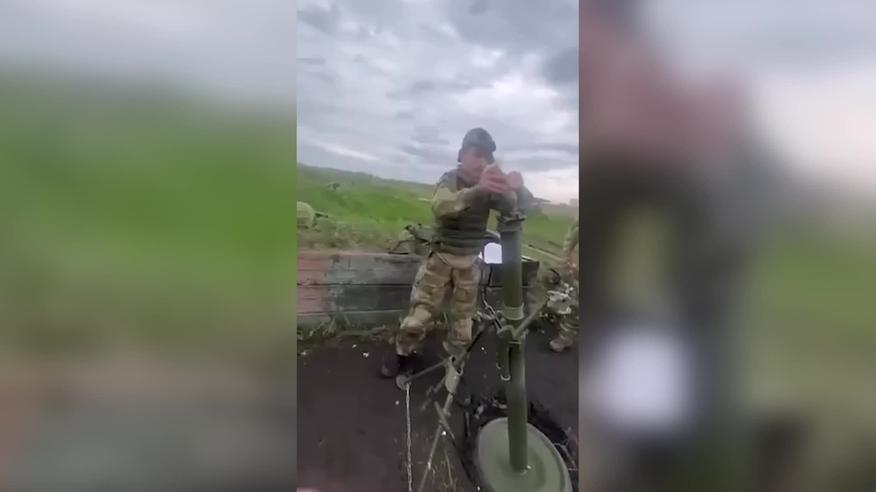 Российский солдат едва буквально не поразил своих коллег, заряжая миномет.