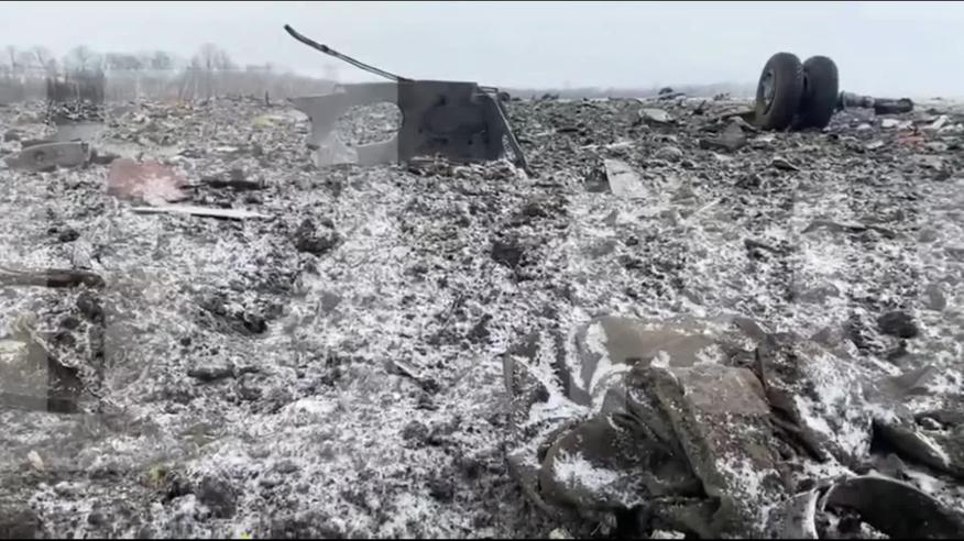 Российские пропагандистские СМИ публикуют кадры с места крушения Ил-76 в Белгородской области. На кадрах видно, что обломками грузового судна врага усеяна огромная территория.