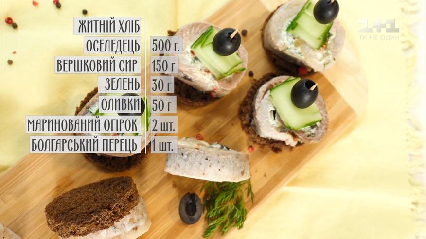 Если в холодильнике есть селедка, есть соблазн съесть ее просто так или с картофельным пюре на скорую руку. Однако Руслан Сеничкин предлагает приберечь аппетит для своей изысканной закуски - селедки с сыром и овощами. Нам понадобятся следующие ингредиенты: 500 г сельди, 150 г сливочного сыра, 30 г зелени, 50 г оливок, 2 маринованных огурца, 1 болгарский перец.