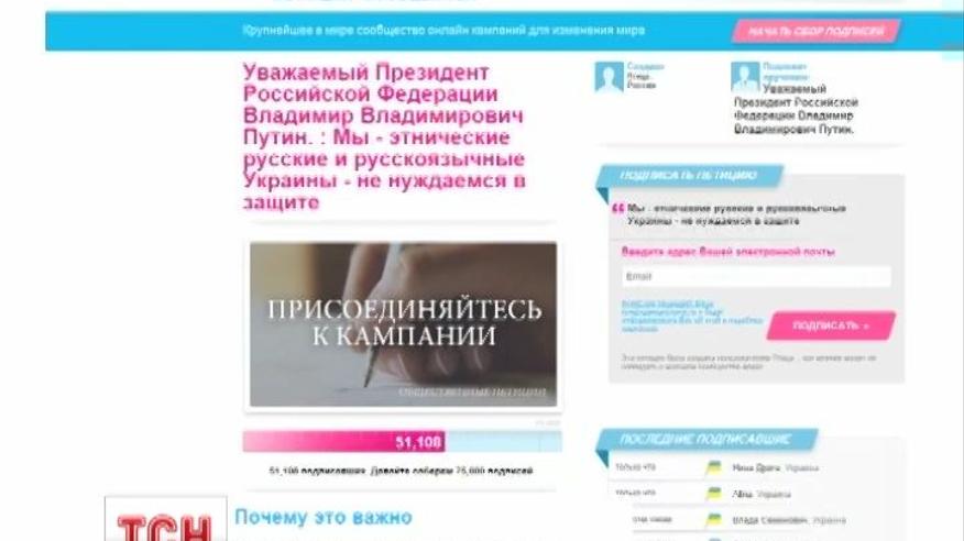 Русскоязычные украинцы призвали Путина не вмешиваться в дела Украины