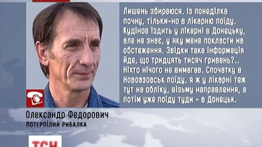 Некоторые СМИ распостранили информацию, что жена рыбака говорила, что в одной из больниц Донецка ее предупредили, что двадцать дней лечения будет стоить тридцать тысяч гривен.