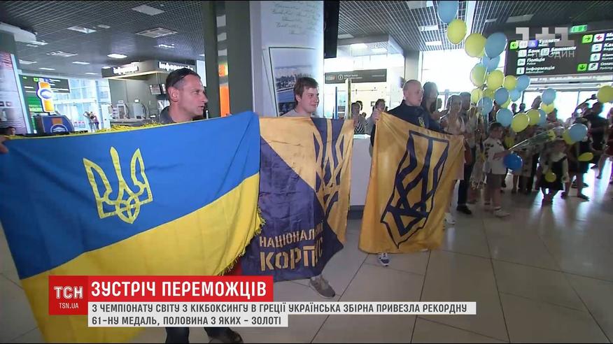 С караваем и песней в "Жулянах" встретили кикбоксеров, одержавших 61 награду на Чемпионате мира