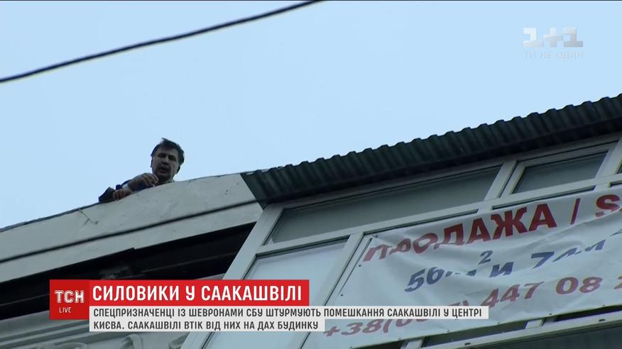Саакашвили убежал от правоохранителей на крышу дома и угрожает прыгнуть вниз