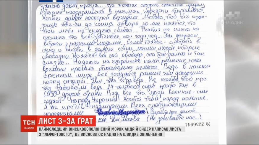 Самый молодой украинский военнопленный моряк написал письмо из тюрьмы Лефортово