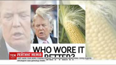 Среди лидеров, конечно, Трамп с его высказываниями: "Рыжий - это новый черный", и фото, где Трамп похож на кукурузу. Среди лидеров видео-мемов - известный ролик с экспертом ВВС Робертом Келли и детьми, которые ворвались к нему в комнату.