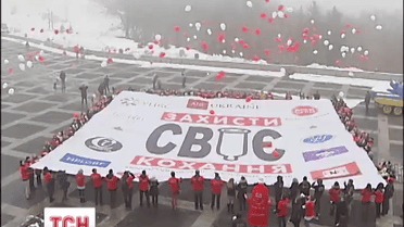 Резиновом изделию киевская молодежь посвятили флешмоб "Защитить свою любовь". Баннер с такой надписью утром развернули на склоне Днепра. Так Украина присоединилась к ряду международных акций против распространения эпидемии ВИЧ.