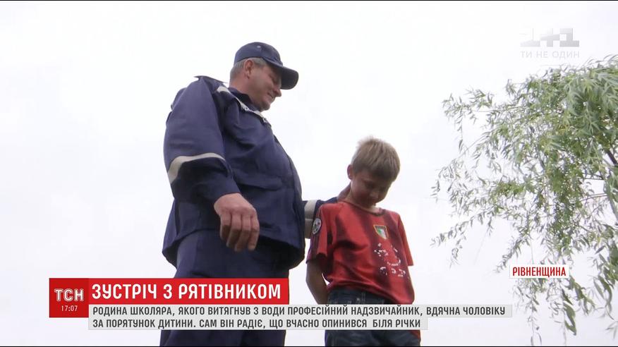 Профессиональный спасатель и школьник из Ровенской, которого чрезвычайник спас на воде, снова встретились. Ребенок временно живет у бабушки. Отец мальчика сейчас служит на Востоке. Спаситель рад, что оказался у реки в нужный момент.