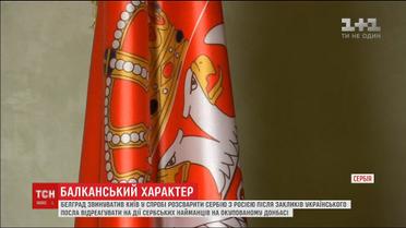 Белград обвиняет Киев в попытке поссорить сербов с россиянами, и говорит, вроде бы, украинский посол нарушает Венскую конвенцию. Министра иностранных дел Сербии раздражали слова украинского посла, который рассказал, что Россия использует Сербию, чтобы разжечь войну на Балканах и уничтожить Европу. По данным СБУ, на стороне боевиков воюет не менее 300 сербов.