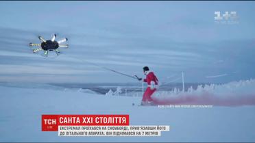 Кейси Нейстат показал, как праздновать Рождество с новыми технологиями. Нарядившись в красный рождественский костюм, он стал на сноуборд и проехался снежными склонами, держась за трос, который прицепили вместо оленей к немалому дрону. Прыгая, он по несколько минут держался в воздухе на высоте более семи метров.