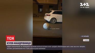 Сетью распространяется видео, где бетонный шар катится по улицам Харькова и бьет припаркованные авто