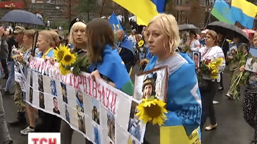 Шествие непокоренных: семьи погибших в зоне АТО также вышли парад на Крещатике