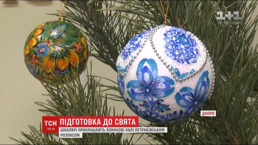 Школьники Днепра рассказали о традиции раскрашивания елочных украшений в национальном стиле