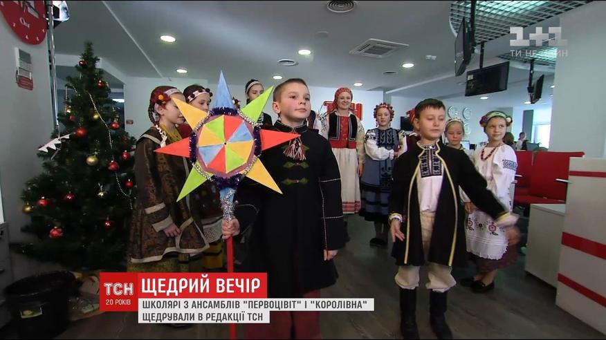 Школьники из столичных ансамблей поздравили щедривкой ньюсрум ТСН