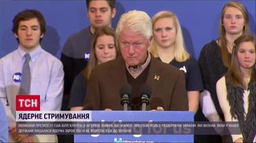 Сожалеет, что уговорил Киев отказаться от ядерного оружия. Экспрезидент США Билл Клинтон выразил сожаление из-за своей роли в разоружении Украины. В интервью Клинтон признал, что Россия не вторглась бы в Украину, если бы у украинского государства оставались силы ядерного сдерживания. Экспрезидент Соединенных Штатов подчеркнул, что испытывает личную заинтересованность, потому что заставил украинские власти согласиться на отказ от ядерного оружия. В то же время в Киеве боялись это делать, потому что считали ядерное оружие единственным, которое защищало от экспансионистской России.