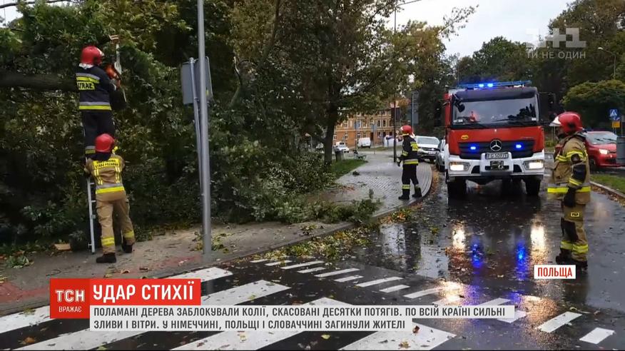 В Польше, Словакии и Германии на людей упали деревья. На немецкой железной дороге - хаос. Из-за непогоды на севере страны отменены десятки рейсов. Во всей стране сильные ветры и ливни, их принес штор по имени "Мортимер". В Дортмунде с затопленного пастбища спасли более трехсот овец.